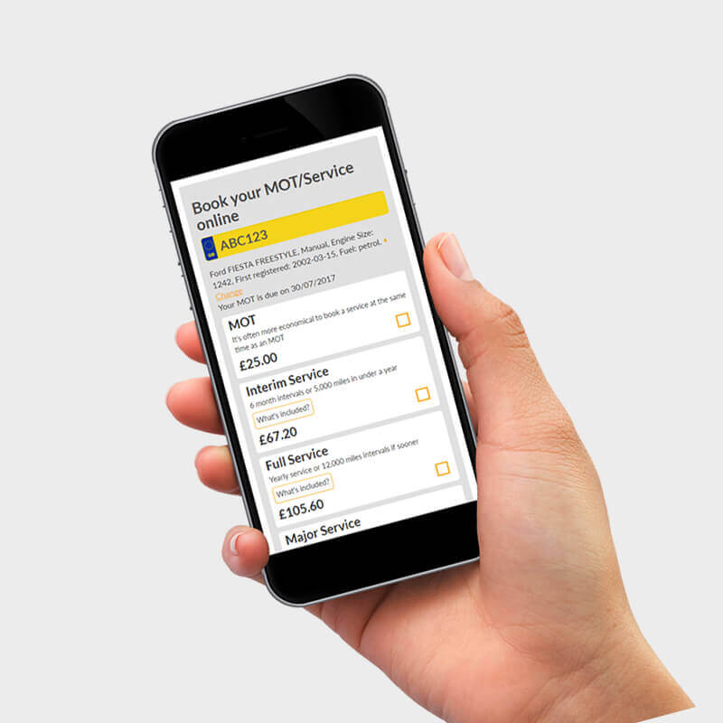 Enter your car registration for an instant price that you can book 24/7. Find out your MOT due date too!